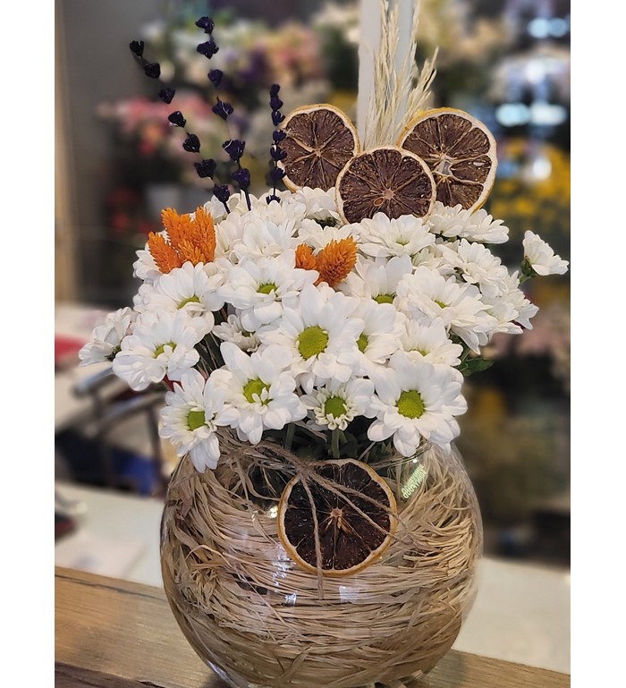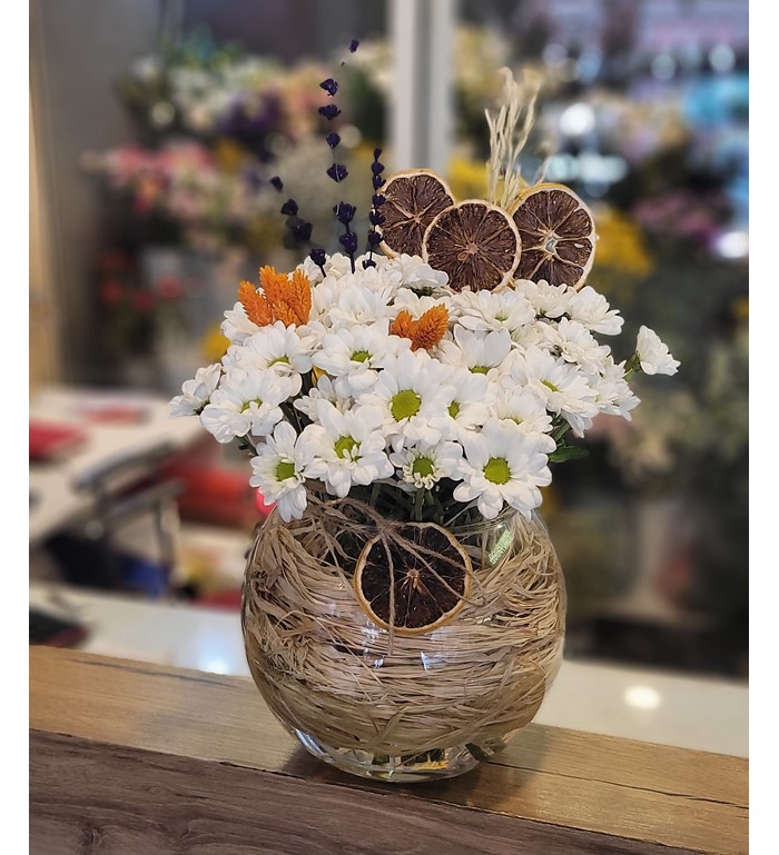Akvaryum vazoda papatyalar