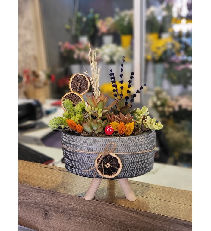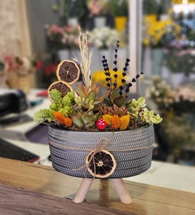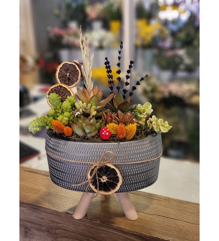 OVAL VAZODA SUCULENT TERERYUMU / stok durumuna göre farklı renk vazo ile gönderilebilir