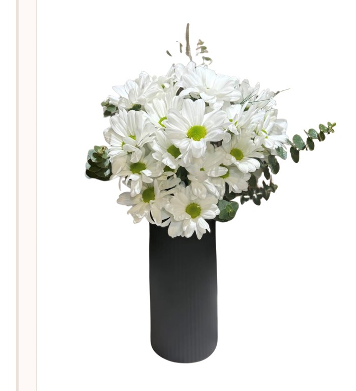 Siyah Çizgili Vazoda Gül ve Papatyalar